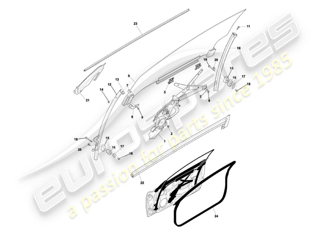 Aston Martin Vanquish (2007) Door Glass & Frames Parts Diagram