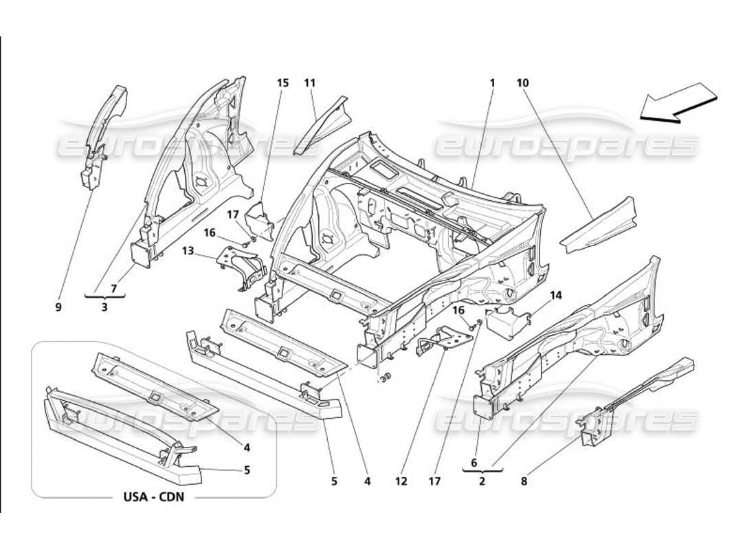 Maserati 4200 Gransport (2005) Front Structure Parts Diagram